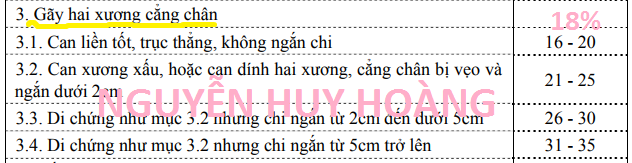VD2:  = 1,5  * 7 000 000đ + (18%-10%) * 0,4 * 7 000 000đ  (Trong đó 7 000 000đ là Lương theo HĐLĐ; 18% là tỷ lệ thương tật khi bị gãy 2 xương cẳng chân )