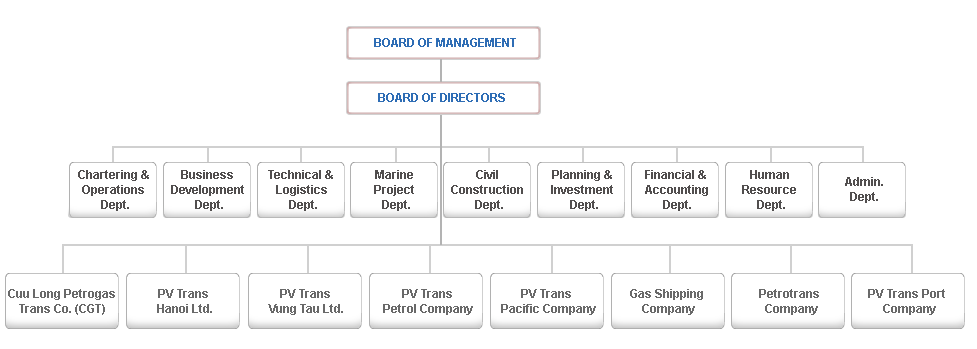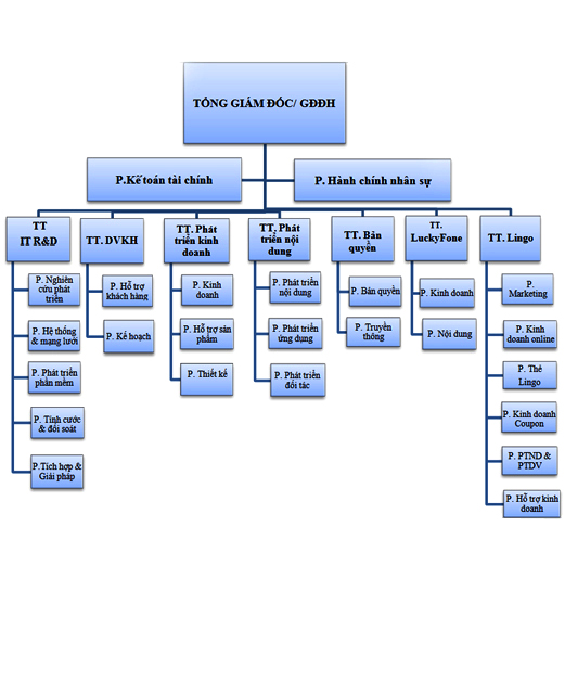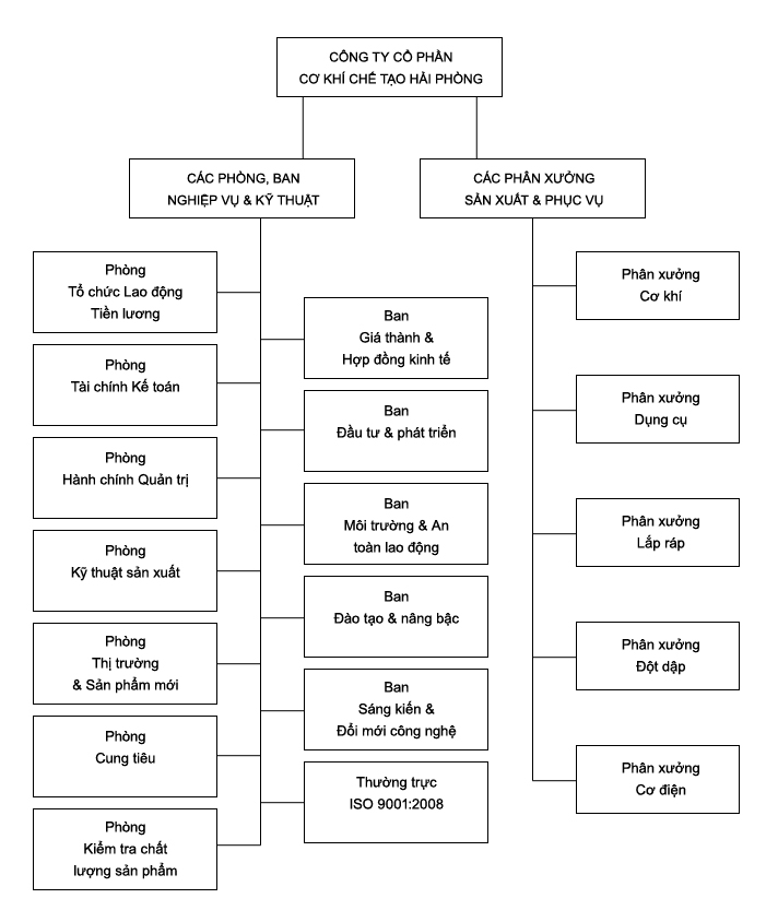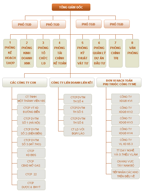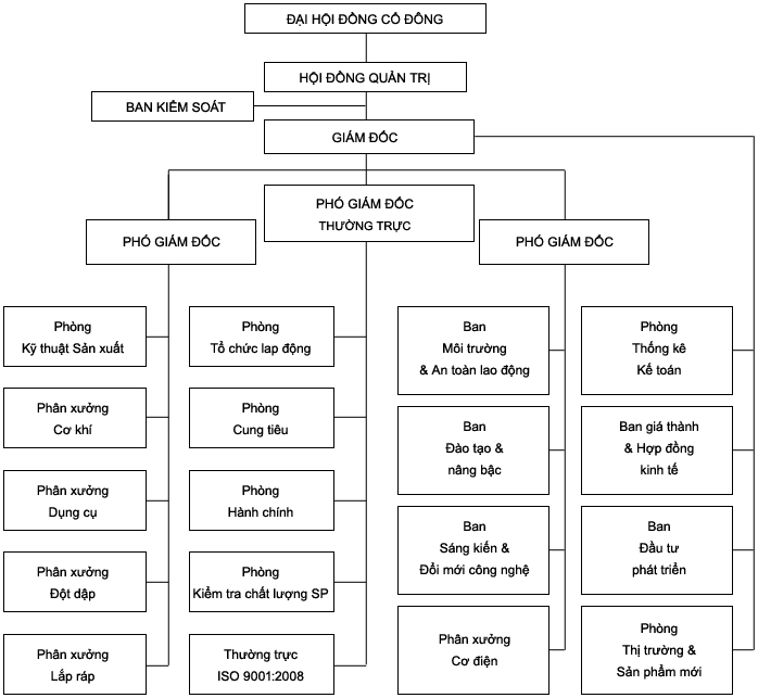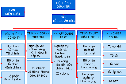 Bộ máy tổ chức điều hành: Giám đốc Công ty, 01 Phó Giám đốc, Kế toán trưởng và các Trưởng phòng chức năng: